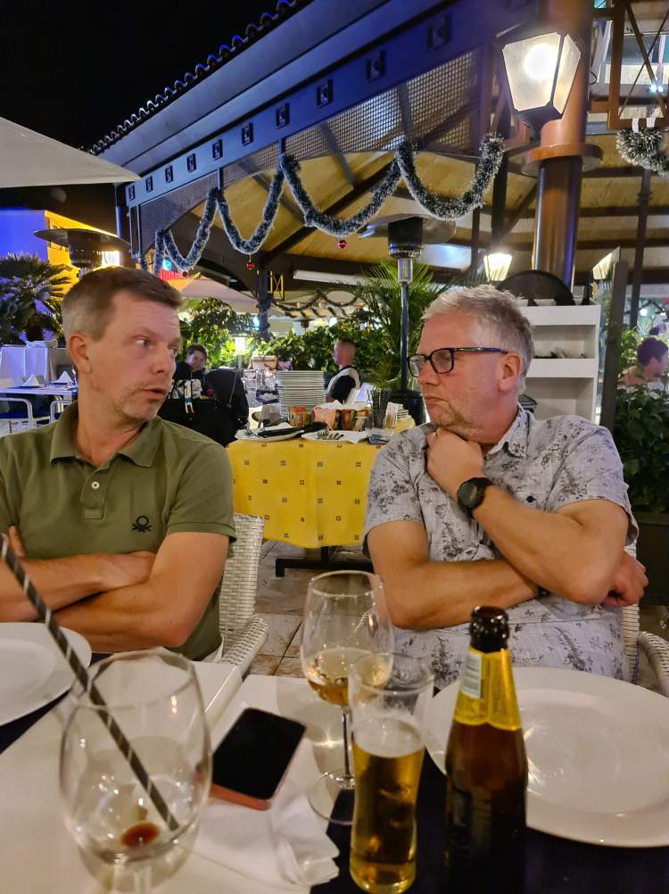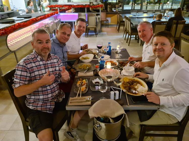 Spania er verdenskjent for tapas. Derfor valgte deltakerne naturlig nok å fokusere restaurantbesøkene sine på meksikanske, indiske, italienske og argentinske restauranter (?!). (Det skal nevnes at Garry ved flere anledninger hintet at han kunne tenke seg tapas til middag, men det falt for døve ører.). Uansett nasjonalitet på kjøkkenet var maten god og drikken enda bedre til priser vi kunne smile av.