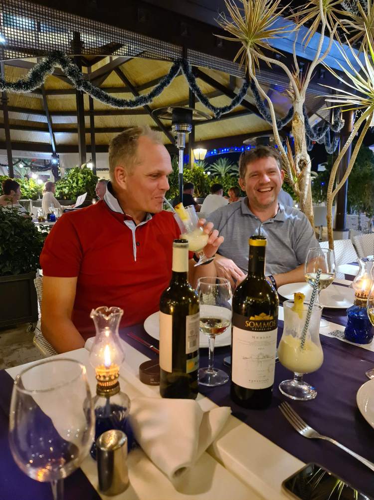 Even fungerte både som filmansvarlig og fore-caddy. (Det skal nevnes at Wim var lite imponert over Mr. Fore-caddy når han spurte om det var hinder han skulle være oppmerksom på ifm. et tilsynelatende enkelt «lay-up-salg» på «blindt» par 5 hull. Even gav «grønt lys» men til Wim’s store overraskelse og frustrasjon endte et perfekt slag i et vannhinder :-)).